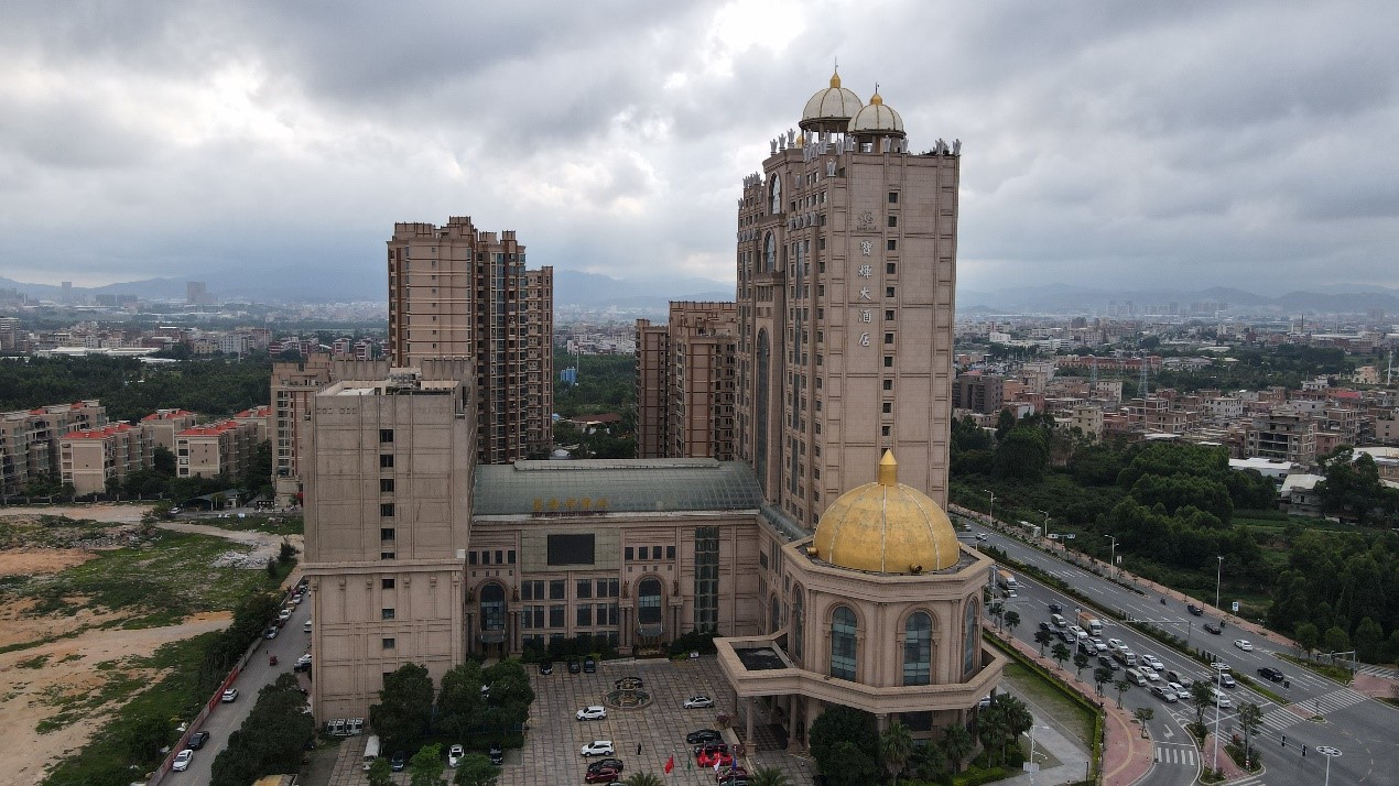 (一)晉江寶輝大酒店有限責任公司的抵押物為:晉江寶輝大酒店有限責任公司名下房產(酒店)和土地使用權。其中酒店建筑面積57,807.62平方米,土地面積12,940.00平方米。酒店所處位置為福建省泉州市晉江市安海鎮,為當地工業重鎮。酒店外觀維護好,同時由于附近高樓較少,識別度高。該酒店共21層,其中:1層為大堂及餐廳;2層為餐廳宴會廳;3層為貴賓包廂和夜總會;4層為夜總會;5層為會議中心及桑拿中心;6層為健身設施;7層為棋牌中心;8至21層為客房。各功能樓層設施維護良好。